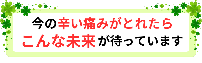 痛みがあることにより、仕事では疲弊し、子どもや夫婦での大切な時間や趣味も満足に楽しめず我慢する日々を送っている方を私たちはたくさんみてきました。