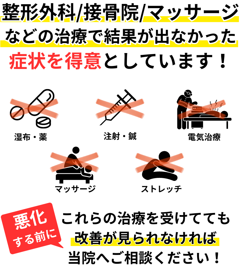 - 整形の薬では一時的な痛み止め、他もその場しのぎでなかなか改善が見られなかった。